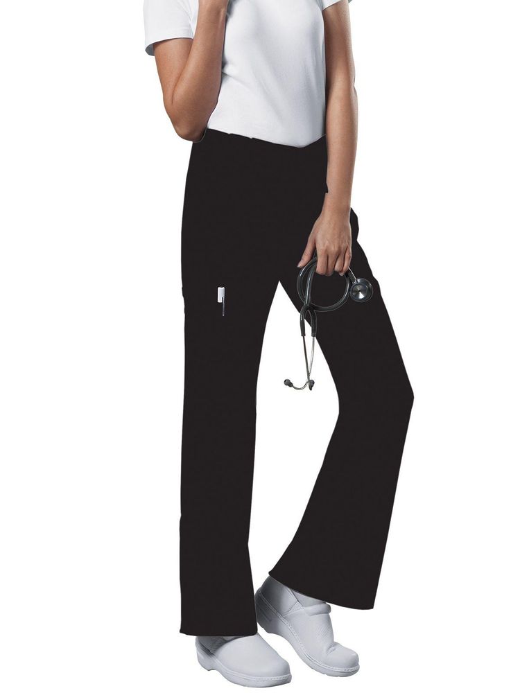 A modern classic fit, mid rise, flare leg, drawstring pant with an elastic waist and front patch pockets. Features: a right side cargo pocket with a sectional pocket, an ID loop, and a back leg seam.