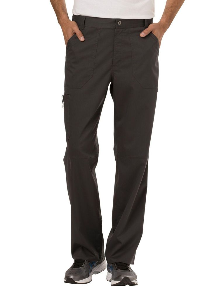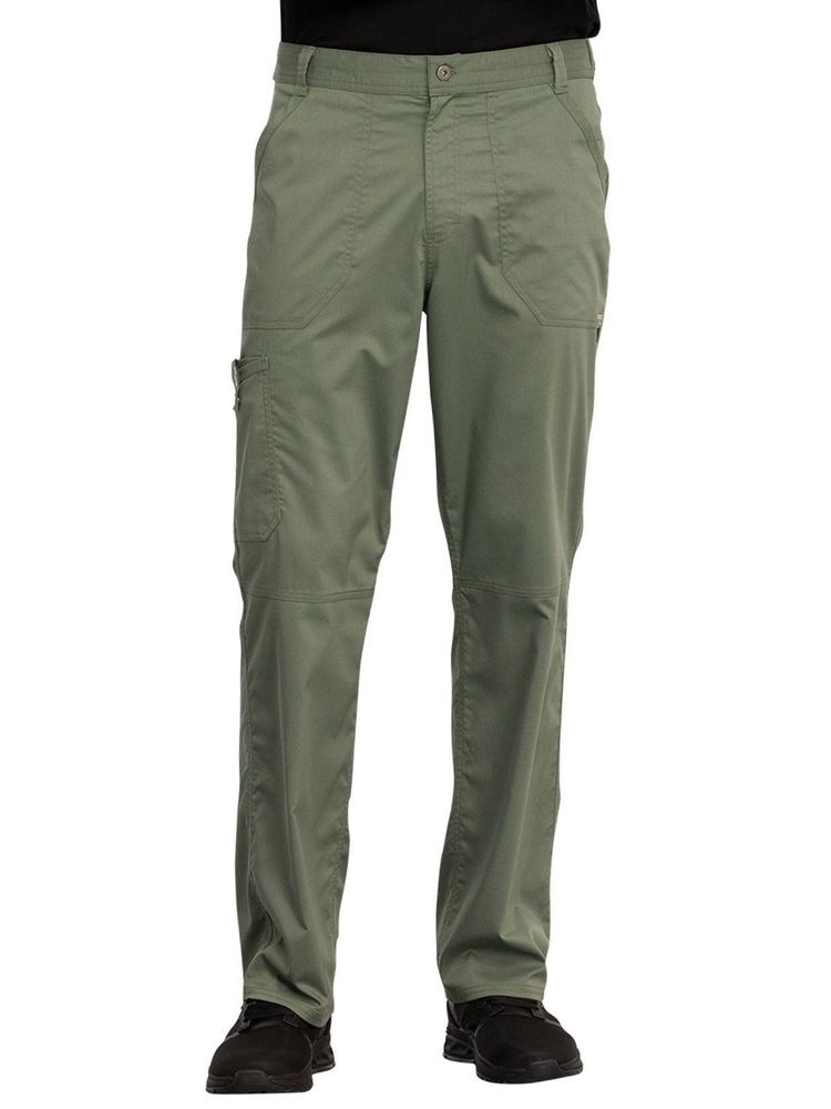 A men’s modern fit tapered leg pant includes a functional inside drawstring, and a back elastic waistband. Features: five belt loops, a zip fly with a button closure, front patch pockets, a logo label with a bungee loop, a right double cargo pocket with a snap I.D. loop, back patch pockets, and knee seams.