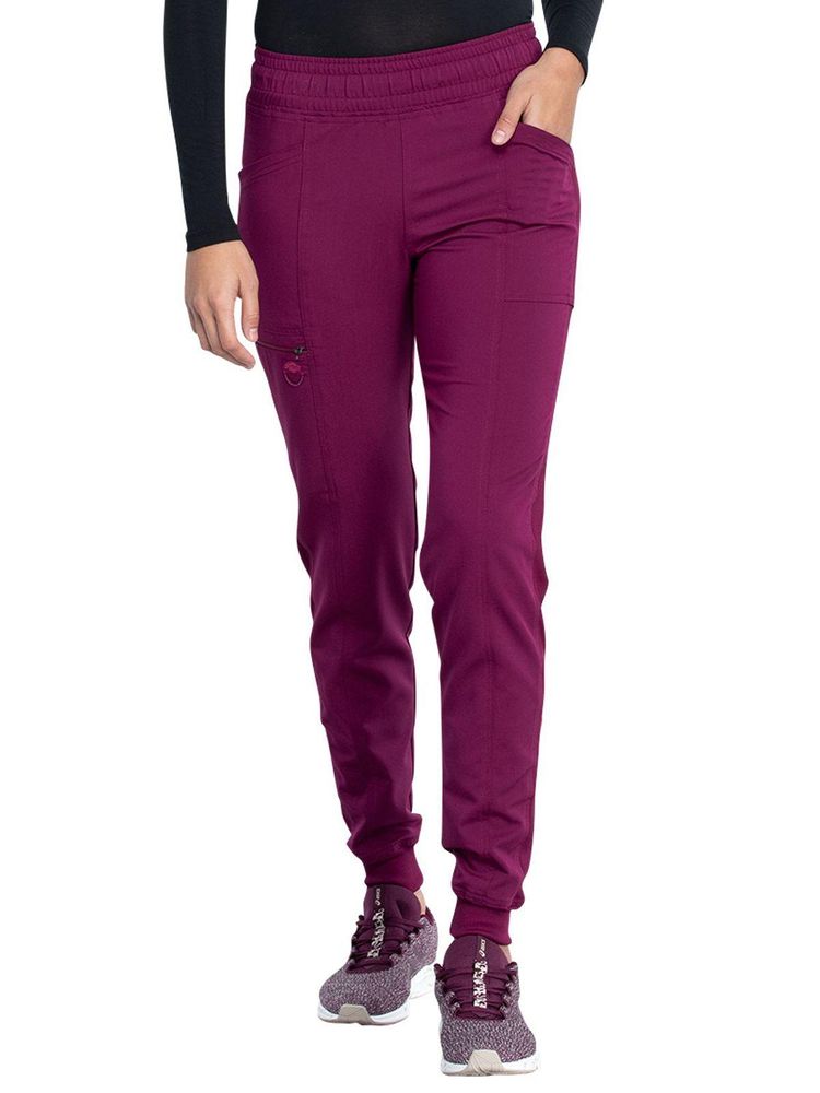This women's Contemporary fit, comfortable, and functional mid rise pull-on jogger pant features a straight leg, a rib-knit waistband with encased elastic, and an inside drawstring for full waist support. The pant features numerous pockets for all of your storage needs, including two front pockets, one cargo pocket, one hidden zipper pocket, and two back pockets. Additional features include a decorative right side utility loop and a Dickies tonal woven label. Inseams are as follows: 27 1/2" - Petite, 30" - Regular, 33" - Tall. Leg Opening: 15".