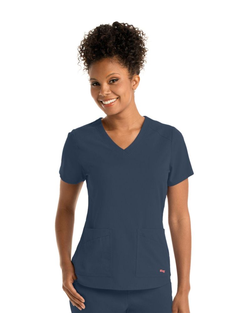 When you're working long shifts, comfort is key. This women's Grey's Anatomy scrub top is made of spandex-stretch fabric with a cotton feel against your skin. Moisture-wicking, wrinkle-resistant and stain-releasing, it's as easy to care for as it is easy to wear.