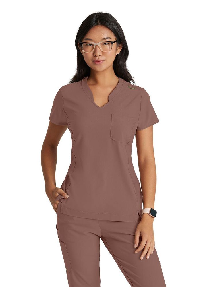 Set yourself up for success with this modern top from Grey's Anatomy by Barco Evolve. The clean design features a banded v-neck that complements the high-low step hem, while princess seams provide a flattering fit. Plus, the signature green loop offers a convenient place for your badge. The sustainable fabric is soft, stretchy, and breathable for all-day comfort.