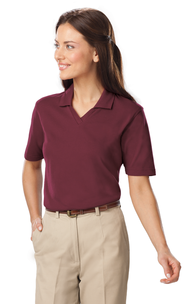 Make a vivacious addition to your wardrobe with this ladies 6.7 oz. ladies V-neck pique polo. Made of a 60% cotton/40% polyester blend and perfect for the golf course and the office alike.