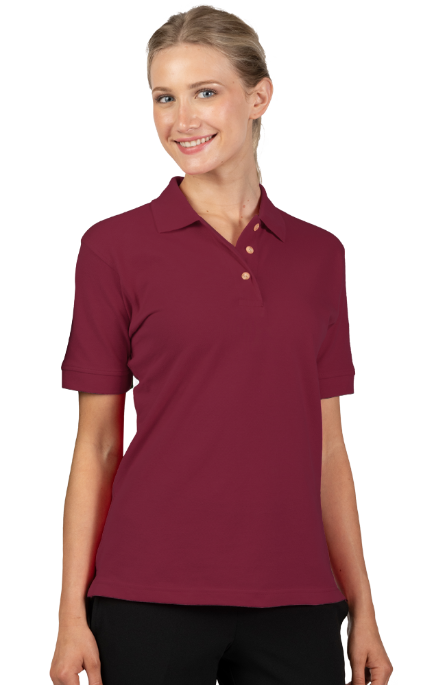 Show off your style when sporting this ladies short-sleeve 6.7 oz. pique polo shirt. Made of 100% Egyptian ring-spun cotton, this fashion-forward shirt is fitted with a straight bottom and features stain-release technology.