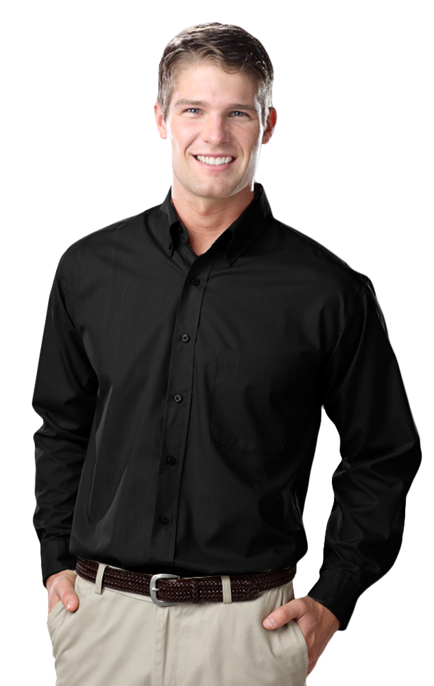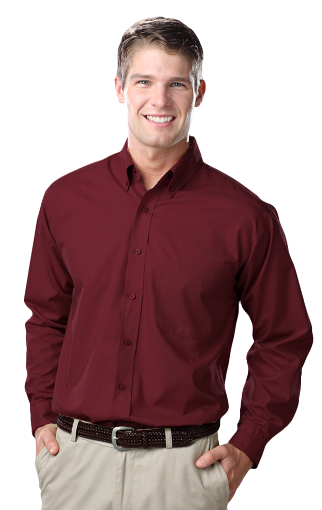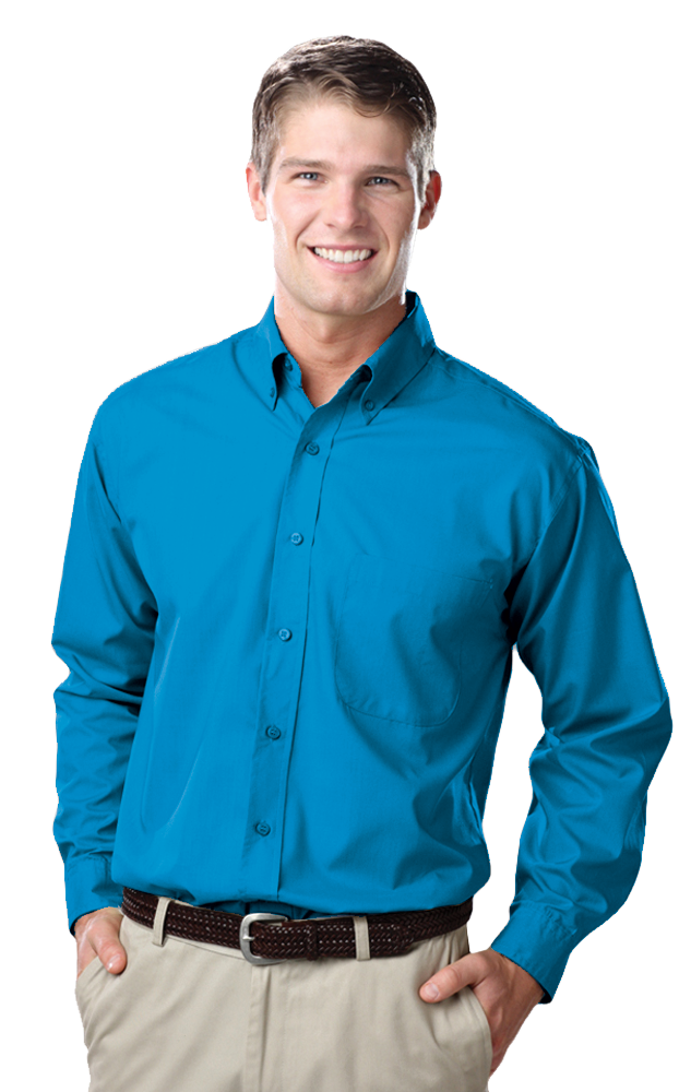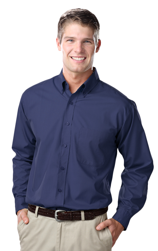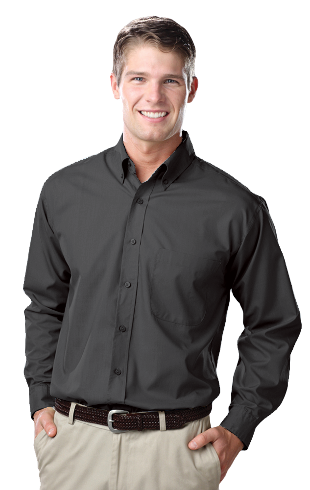 Essential attire for the office and beyond, this men's long-sleeve easy-care poplin will show off serious style! Made from a blend of 65% polyester/35% cotton.