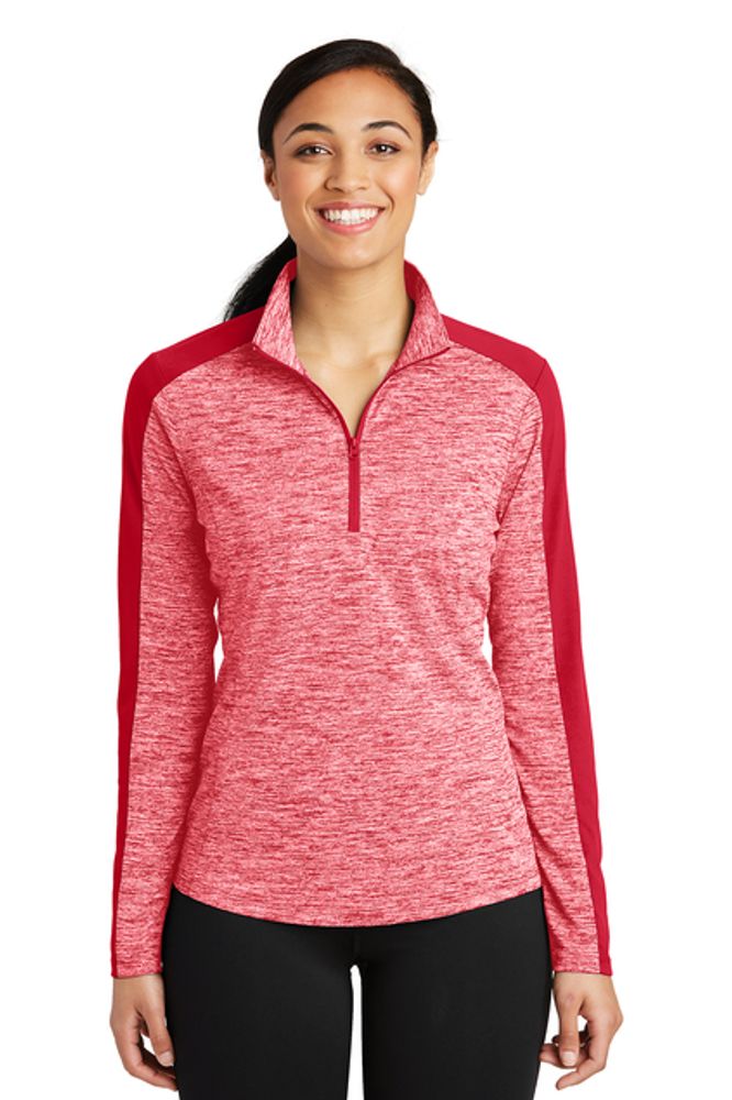 This lightweight pullover locks in color, wicks moisture and has an amped up colorblock look. • 4.1-ounce, 100% polyester yarn-dyed jersey with PosiCharge technology (Electric Heather) • 4.7-ounce, 100% polyester jersey with PosiCharge technology (solid) • Removable tag for comfort and relabeling • Cadet collar • Reverse coil zipper • Colorblock on shoulders and sleeves • Princess seams • Set-in sleeves • Open cuffs and hem • Drop tail hem