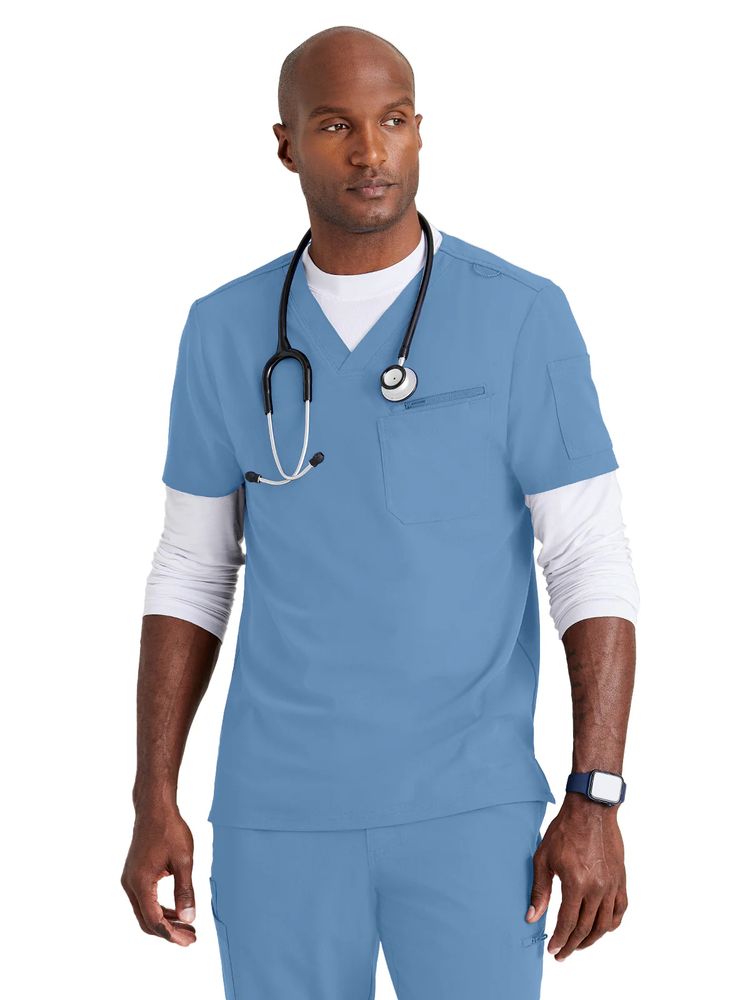 This reimagined men's scrub top includes elevated details and after-work-worthy styling. The classic V-neck marries form and function with Luxe360 fabric, 4-pockets, and a tool strip detail that will keep you standing out.