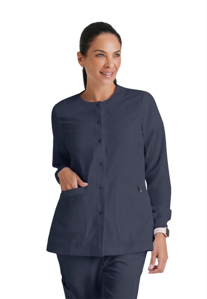 Stay comfortable on chilly mornings, late nights, or just when the office feels a little too cold with this women's Grey's Anatomy Classic warm-up jacket. Sweat-wicking and soft to the touch, this top keeps you dry no matter what your shift brings. Snap buttons make quick changes easy.