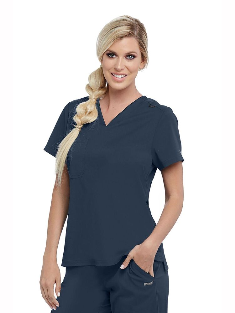 To tuck or not to tuck? This women's Grey's Anatomy scrub top gives you a choice. It's made of spandex-stretch fabric with a soft cotton touch to keep you comfortable as you move through your demanding shift. Tuck it in for a tailored look or leave it untucked for comfort and extra room to move.