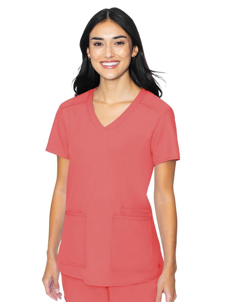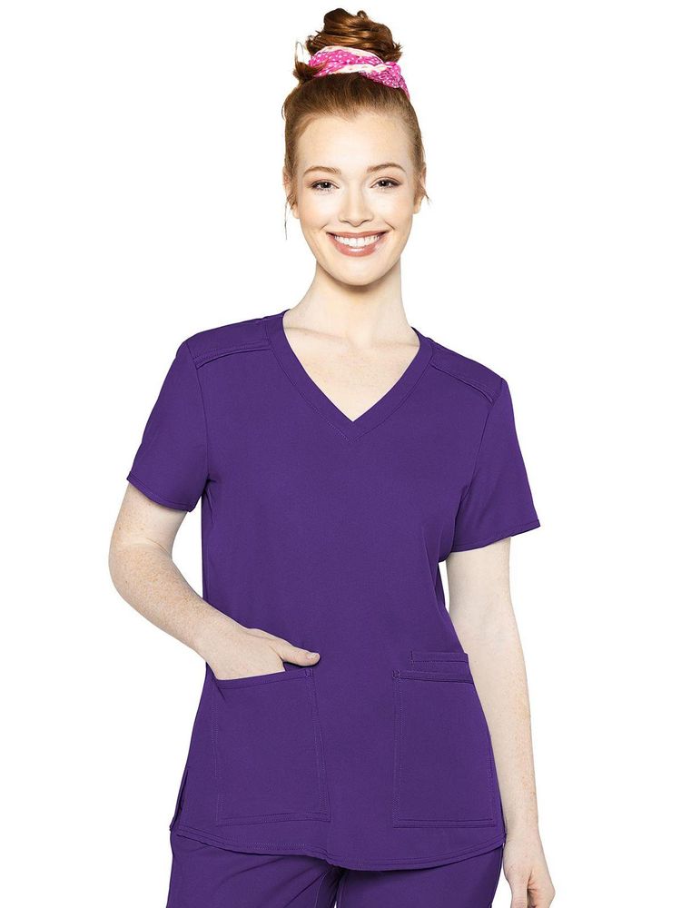 Good things come in threes. Case in point: the fabulous fit features and fabric of your Insight V-neck scrub top. Made with a box pleat shoulder binding and a back yoke for a perfectly polished drape. This top features a v-neck collar, three patch pockets, front shoulder yokes, and Insight Motion Fabric. Back Length: 27"