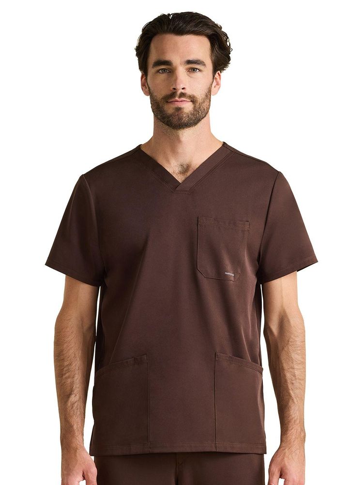 V-neck top with 4 pockets and 1 media pocket. Wicks moisture quickly. Optimum mobility and comfort. Wash, dry, and wear. Won't fade. Elegant styling. Well-balanced fit. Center back length: 30".