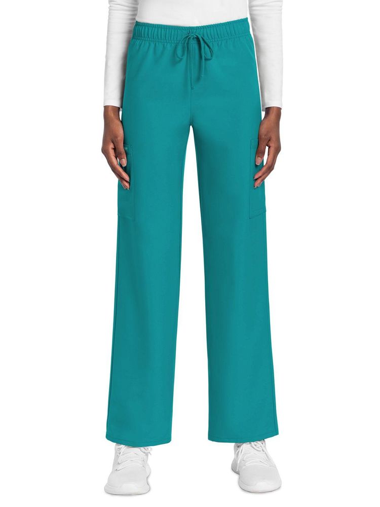 Reliable and comfortable, this Unisex fit drawstring pant has an elastic-reinforced waistband and drawstring. There are three pockets to store work essentials: two cargo patch pockets and one back patch pocket. Reverse hem trim on all pockets. Decorative tonal topstitching for added detailing. This scrub pant offers genderless classic styling. Featuring PROTX2 technology with antimicrobial and moisture wicking properties. Straight leg, 19 1/2" opening. Inseam: 31"